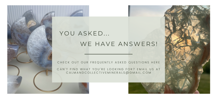 We provide itemized invoices including the crystal codes so you know the exact crystals you claim are the ones you receive. We also keep a physical and digital log throughout the live of each and every claim. It is your responsibility to ensure the crystals you believe you claimed from your end are the crystals you paid for. Because of our extensive record keeping and in-depth invoicing system, we are not responsible for any crystals received that are not what you thought claimed and will not accept returns or offer a refund. If you'd like confirmation before completing your order, please email us at calmandcollectiveminerals@gmail.com and we'd be happy to send you a picture of your basket.